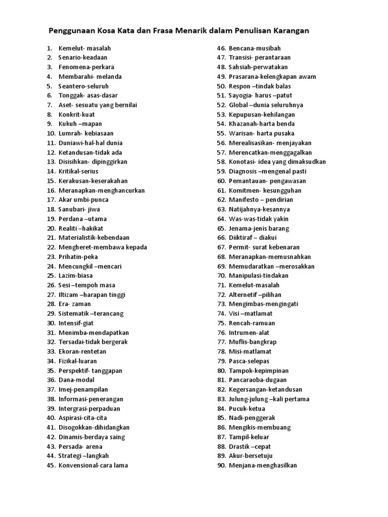 Kosa kata tinggi untuk karangan bahasa melayu spm 1.